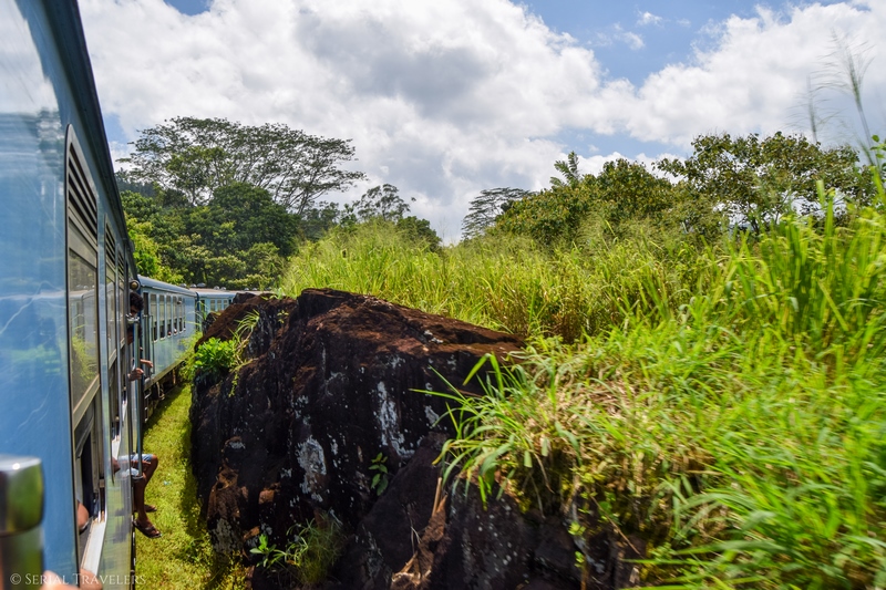 Une particularité de ce voyage en train : les jeunes Sri Lankais qui se hissent complètement hors du wagon lorsque le train roule, chose totalement inédite et interdite en France puisque les portes sont fermées. Mais pas au Sri Lanka !