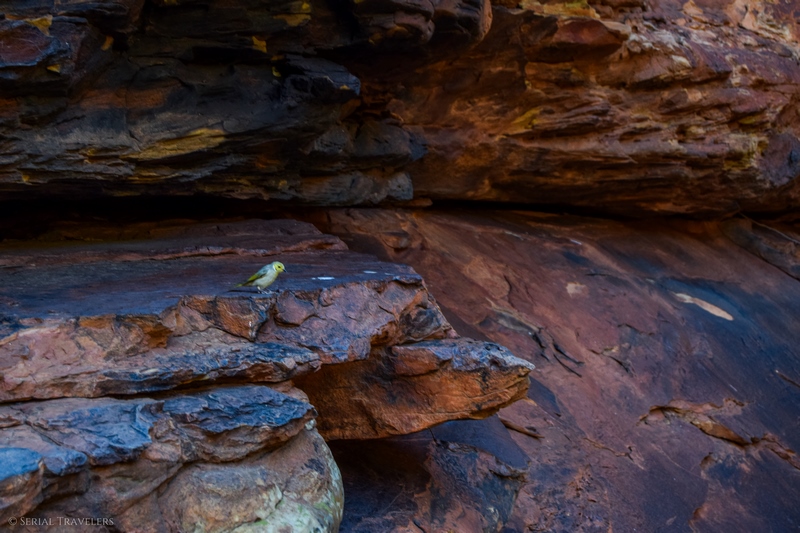 Il existe plusieurs sentiers de randonnée pour visiter Kings Canyon, mais la randonnée Kings Canyon Rim Walk est clairement et de loin la meilleure, car elle fait le tour du canyon dans sa totalité et permet découvrir le Garden Of Eden (Jardin d’Eden, un billabong ou trou d’eau en plein désert), l’un des plus beaux endroits du parc ! Kings Canyon est comme son nom l’indique un canyon ou une gorge, c’est-à-dire un passage encaissé entre deux reliefs qui a été créé par l’érosion hydraulique, sur n’importe quel type de roche… Et bien que cet endroit se trouve en plein désert, on pourrait croire que le site est complètement exempt de vie… Pourtant, il n’en est rien ! Kings Canyon abrite en effet une faune et une flore riches et variées au milieu de cet environnement si inhospitalier…