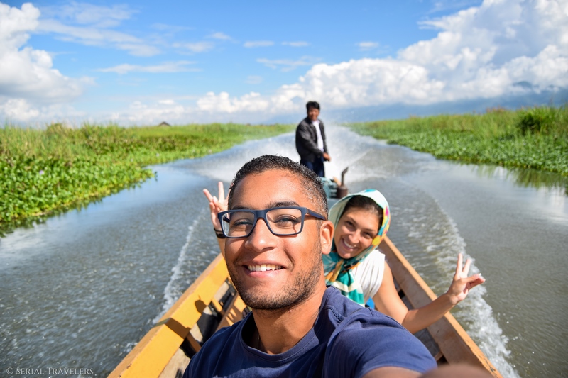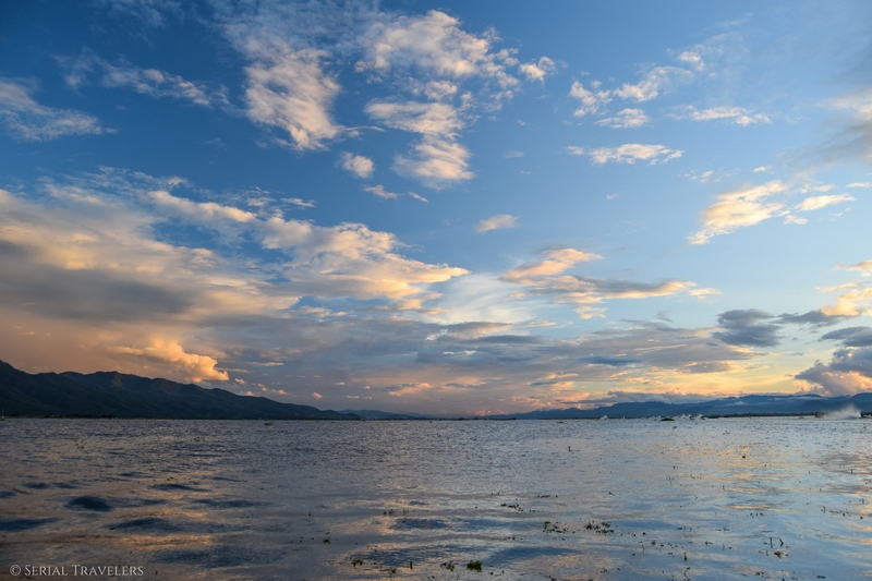 Voilà, on y est enfin ! Vers 17H, notre chauffeur nous emmène dans le Nord du lac, où se concentrent les fameux pêcheurs/acteurs ! Quand on pense au lac Inle, on a évidemment en tête toutes ces photos de bonhommes au chapeau pointu jouer les équilibristes sur leur embarcation, avec une nasse rigide au coucher du soleil…
