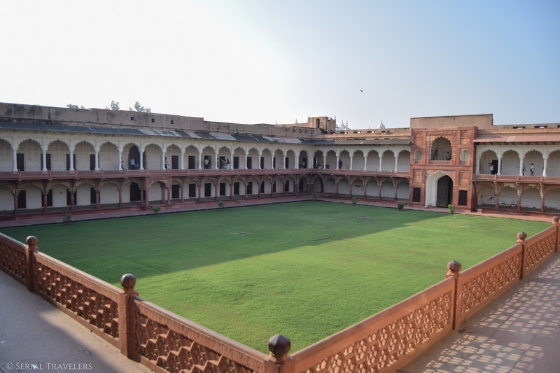 Malgré tout, la visite du fort reste reposante grâce à ses grands espaces verts et ses petites fenêtres avec vue sur la Yamuna et sur le Taj Mahal.