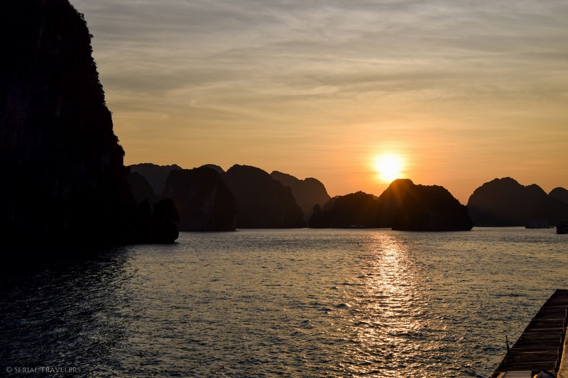 Manque de chance, le soleil est déjà bien bas lorsque nous remontons dans la jonque et nous n’aurons pas la chance d’assister à un vrai coucher de soleil.