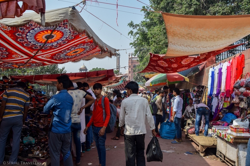 Après la découverte de la mosquée rouge, on continue sur notre lancée et partons en direction du fort rouge, autre emblème de la ville et énième vestige du passé hérité de l’empire Moghol. Pour cela, on traverse le Chor Bazar, qui est un énorme marché, étalé au pied de la mosquée Jama Masjid.