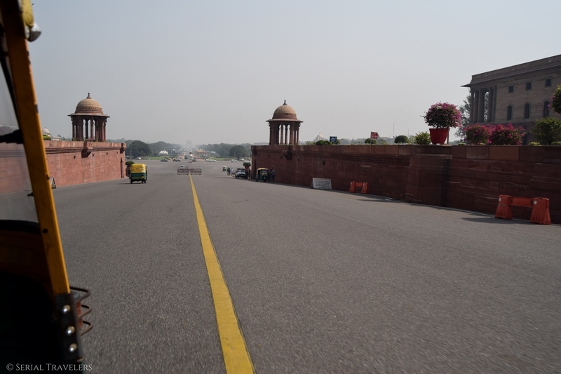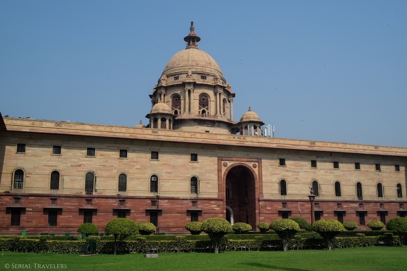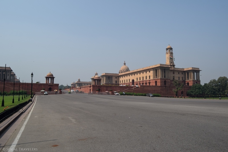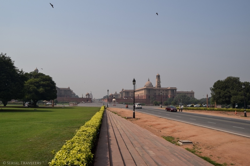 Après Old Delhi, nous reprenons le métro et nous dirigeons cette fois vers le quartier des ministères de New Delhi. Ici, on tombe sur des bâtiments mêlant architecture coloniale anglaise et indienne. Ces bâtiments s’étalent sur la « voie royale » ou Rajpath Marg, où l’on trouve l’India Gate et la résidence présidentielle à ses deux extrémités.
