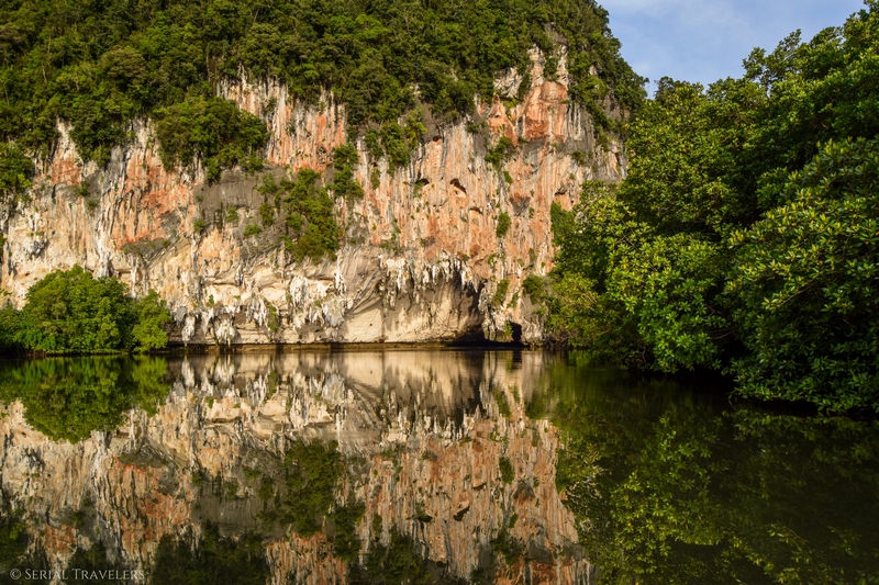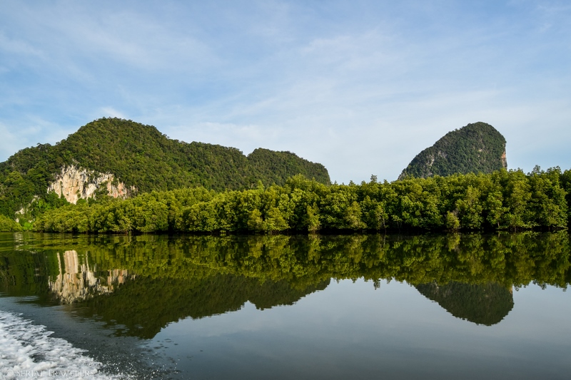 Après avoir longuement hésité et changé plusieurs fois les plans à cause de la météo capricieuse de Phang Nga, on a de la chance aujourd’hui ! Le temps est au beau fixe et la lumière promet d’être belle pour les photos ! La veille au matin, il pleuvait encore des trombes d’eau sans discontinuer, reliquat du passage d’un typhon arrivant maintenant au-dessus du Vietnam…