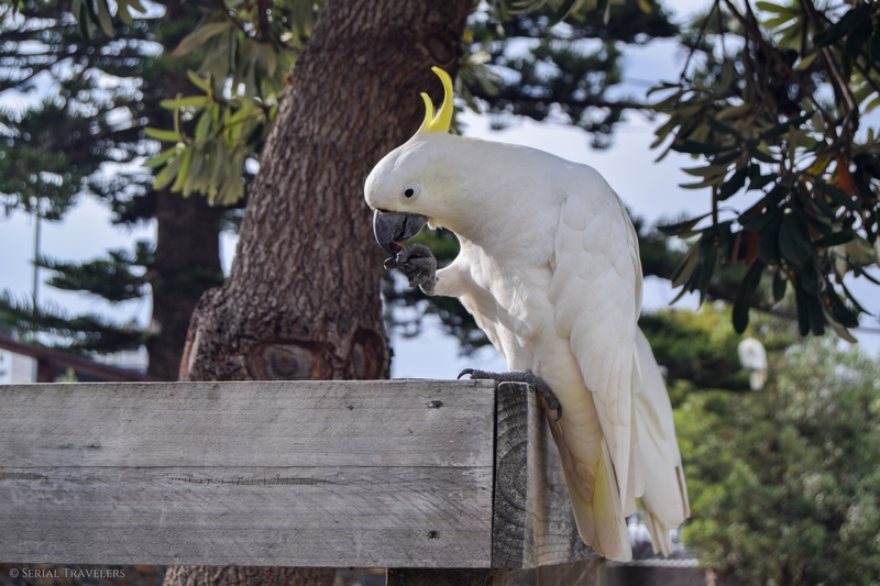 - Des cacatoès à huppe jaune rencontrés à Lorne, sur la Great Ocean Road