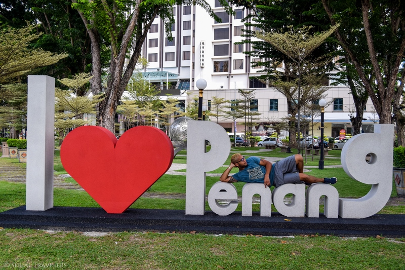 Pas loin de la Maison Bleue, vous trouverez le signe I Love Penang. En bons touristes que nous sommes, nous ne manquons pas de réaliser notre petite photo 🙂 .