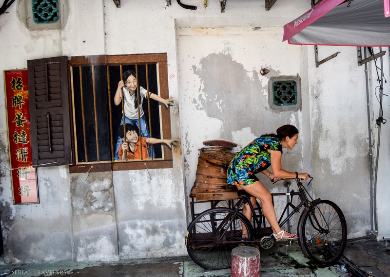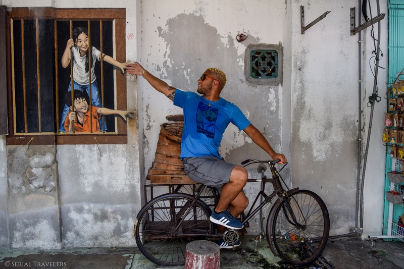 Où se trouvent ces enfants à vélo ? Et ceux sur la balançoire ? Nous vous donnons toutes les adresses des œuvres incontournables de George Town – Penang, capitale autoproclamée du Street Art !