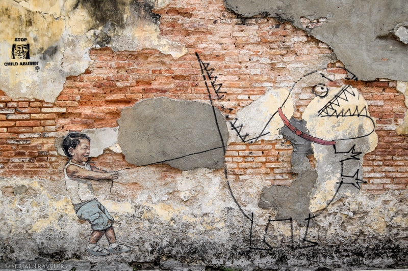 Le samedi 9 septembre 2017, nous partons à l’assaut des oeuvres de Street Art les plus connues à l’aide d’une carte donnée par l’hôtel. Les œuvres sont vivantes, et au fur-et-à-mesure, elles se retrouvent effacées ou recouvertes. Les localisations ne sont donc valables qu’à la période où nous avons été à Penang…