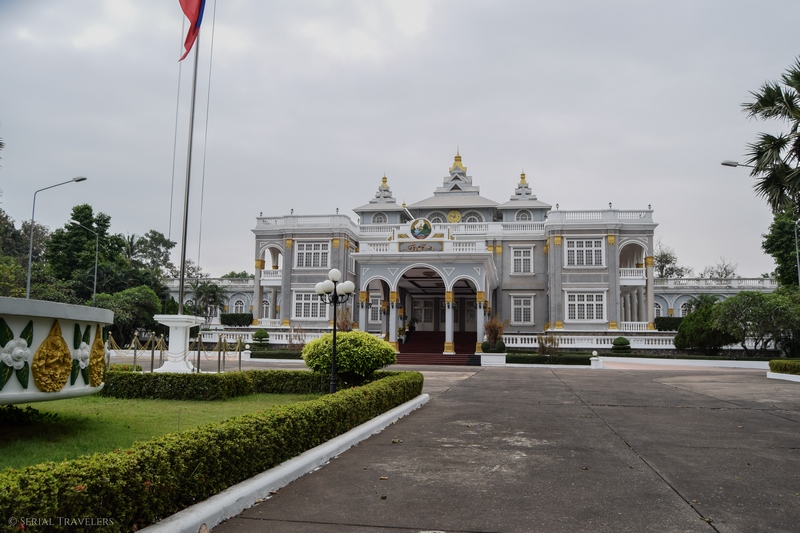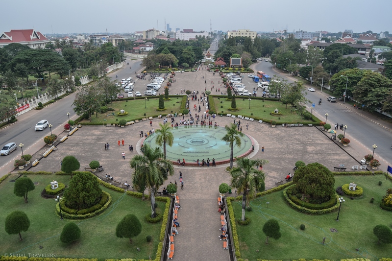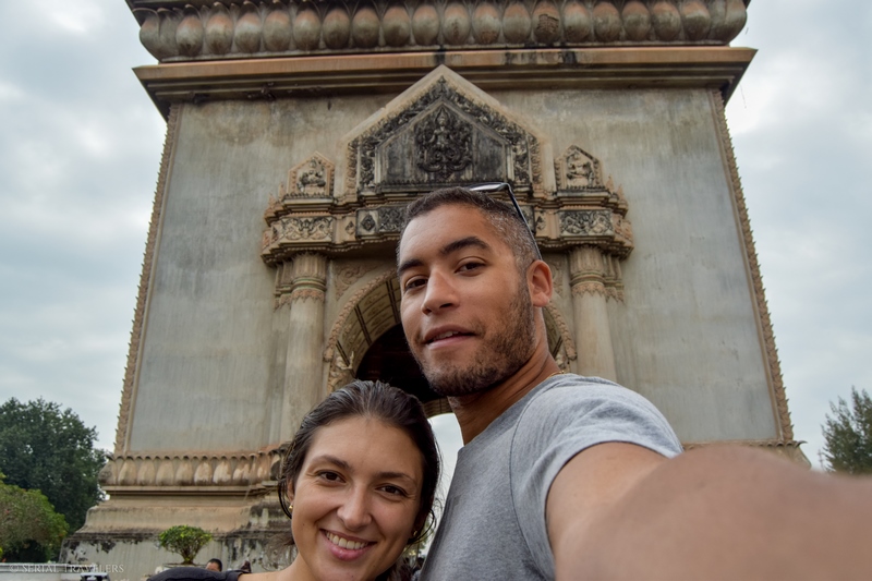 Après avoir mangé un bout dans un petit resto situé à côté du palais présidentiel, nous entamons une marche sur les Champs Elysées locaux, qui n’ont rien à voir avec leur modèle français. Il s’agit d’une grande avenue bordée de bâtiments officiels et de quelques magasins, débouchant sur le Patuxai, l’arc de triomphe laotien, érigé en mémoire des combattants laotiens qui ont combattu contre l’envahisseur Français.