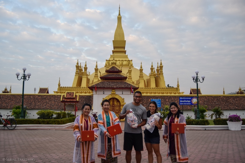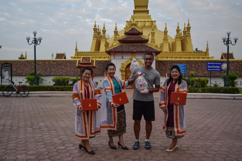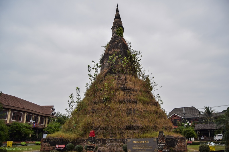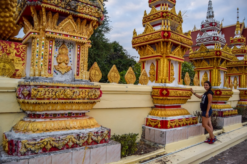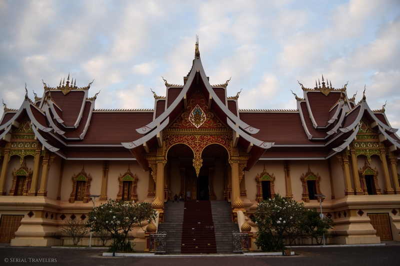 Samedi 9 décembre 2017, nous quittons Vang Vieng à bord d’un bus (assez inconfortable) vers 10H du matin, et après 4H de route, nous atterrissons à Vientiane, la capitale laotienne… Sauf que ce bon vieux chauffeur nous laisse au centre-ville, et pas dans une gare routière comme d’habitude ! Mais, pas d’inquiétude, des chauffeurs de taxi collectifs sont là pour vous harponner à la sortie du bus !