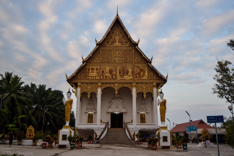 Les premiers regards que nous avons sur cette ville ne nous enchantent pas vraiment et Nico, qui y a passé 3 jours à son arrivée au Laos dresse le même constat. La ville est très étendue et même si elle reste à taille humaine avec des bâtiments bas, le tout est assez moche car aucune cohésion ou harmonie ne s’en dégage… C’est bien simple, sur un même trottoir, les petits boui-bouis et les immenses hôtels se côtoient, au milieu de bolides dernier cri et de vieilles motos au bord de la rupture.