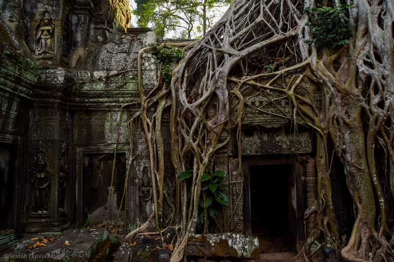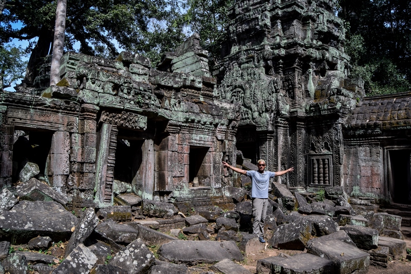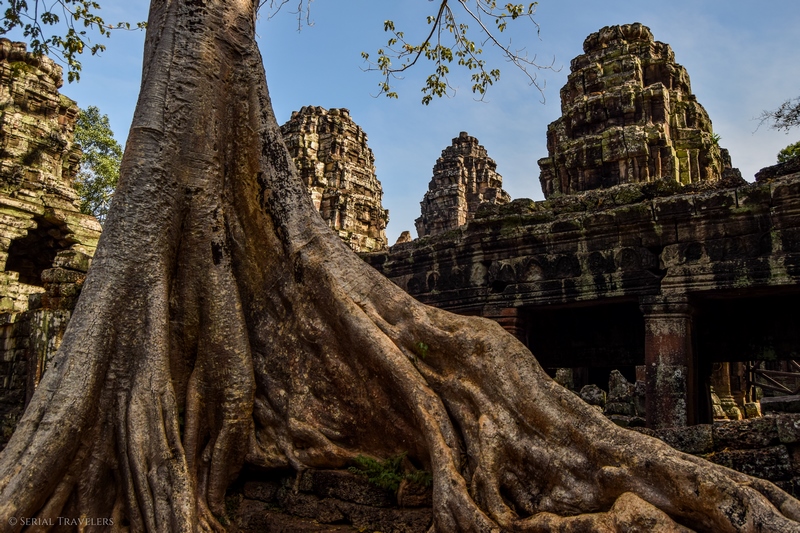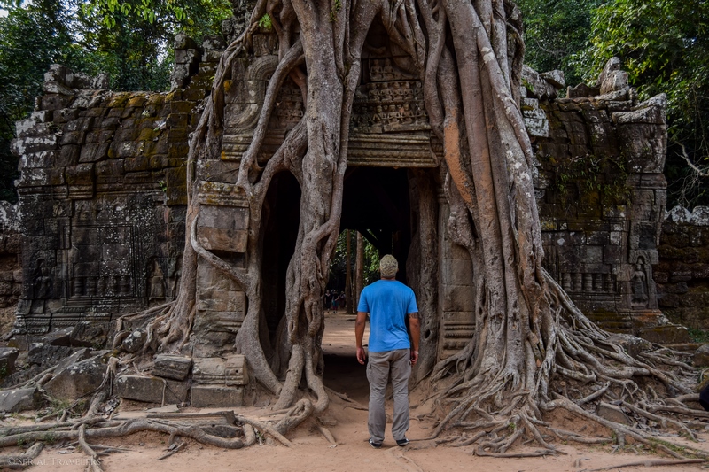Construit sous le règne de Jayavarman VII vers 1186, Ta Phrom était autrefois l’un des plus grands temples d’Angkor ! En effet, vivaient à l’époque près de 12 600 personnes dans ce monastère royal d’une soixantaine d’hectares. Il s’agit sans aucun doute du temple le plus emblématique d’Angkor, car ce sont les images des racines des arbres « fromagers » (appelés ainsi car on utilisait le bois pour fabriquer les boites de fromage) s’insinuant dans les ruines que l’on voit partout.