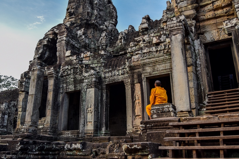 Angkor Vat, qui signifie « ville-pagode » en khmer a été commencé au XIIème siècle après J-C, juste avant la construction de Notre-Dame de Paris, et aura été achevé 37 ans plus tard. On estime que plus de 300 000 ouvriers et 6 000 éléphants participèrent à sa construction : il s’agit tout simplement du plus grand monument d’Asie du Sud-Est ! Pour info, ce temple est entièrement dédié à Vishnu, dieu suprême chez les hindous. Sa célébrité fait qu’il est le temple le plus visité de tout le complexe, et qu’il faudra venir soit à l’aube, soit au déjeuner ou encore en fin de journée afin de profiter de l’édifice avec moins de monde.