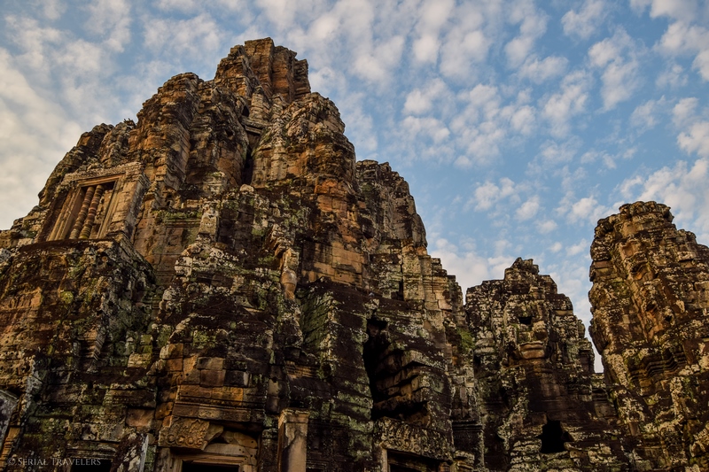 Le Bayon (ou « montagne magique » en khmer) fut construit entre la fin du XIIème siècle et le début du XIIIème siècle sous le règne de Jayavarman VII. Reconnaissable entre tous avec ces tours ornées des quatre visages du Bouddha aux 4 points cardinaux, qui illustrent les vertus du Bouddha : humeur égale (Nord), sympathie (Sud), pitié (Est) et égalité (Ouest). Il y avait à l’origine 54 tours, mais ne subsiste « plus que » 37 tours dorénavant. Ce qui n’entache en rien la beauté et le mystère de ce temple-montagne !