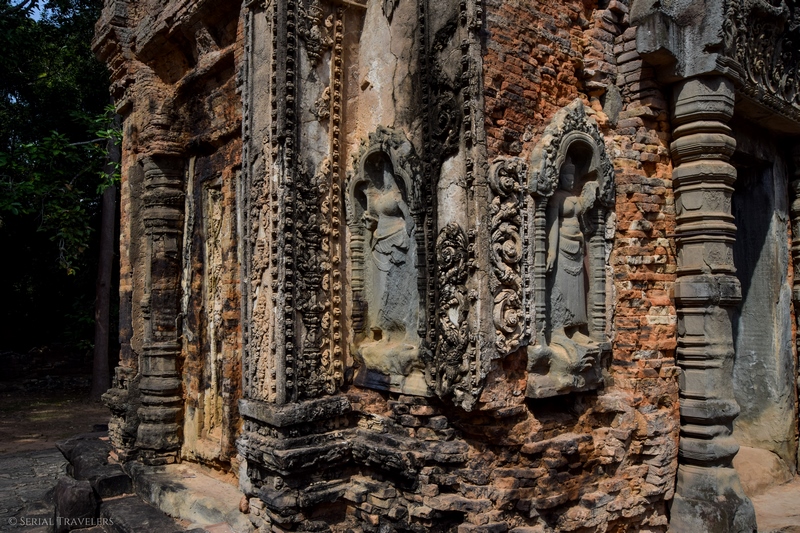 Lundi 15 janvier 2018, satisfaits des 4 derniers jours passés à Angkor et un peu (beaucoup fatigués) par le réveil matinal de la veille, nous irons visiter un dernier groupe de temples, les Roluos, situés à l’Est de Siem Reap. Ce ne sont pas les temples les plus intéressants, mais comme on avait du temps et qu’ils se situent en dehors des circuits touristiques, on s’est dit pourquoi pas ! Cela nous aura permis de voir un autre aspect de la campagne de Siem Reap, loin du tourisme, mais si vous n’avez que 3 jours sur place, passez la visite du groupe des Roluos.