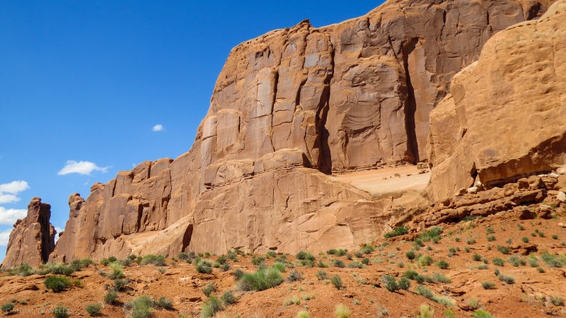 Située à un peu plus d’un kilomètre du parking, Landscape Arch est la plus grande arche naturelle du Monde, puisqu’elle mesure plus de 88 mètres de long, à près de 32 m de haut ! Landscape Arch apparaît au cinéma dans la course de modules de Star Wars : épisode 1. Malheureusement, il n’est pas possible de marcher sous l’arche pour des raisons de sécurité, car un tronçon important de Landscape Arch s’est effondré en 1991.