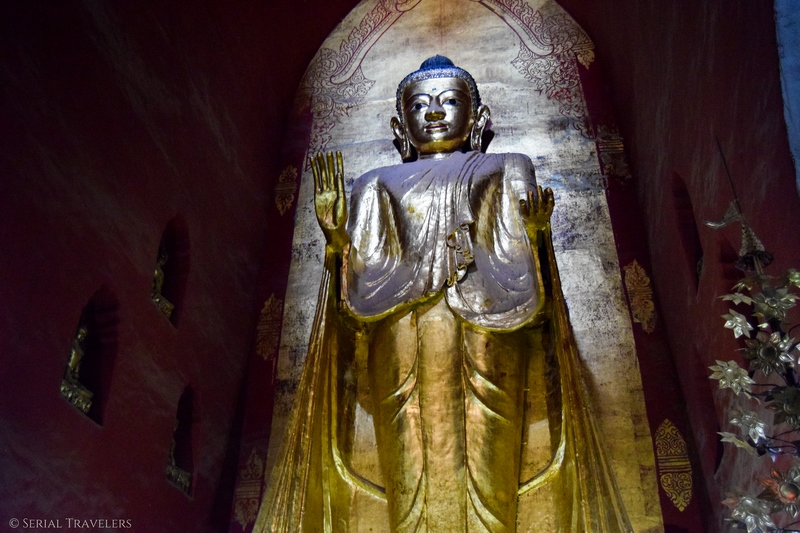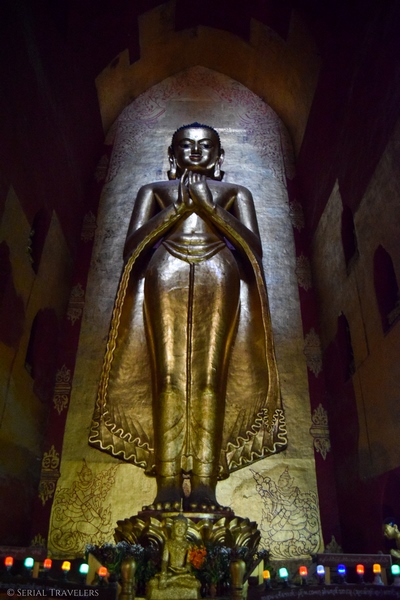 C’est sans conteste le temple le plus sacré, construit par le roi Kyan-Zit-Tha en 1091. Le nom « Ananda » provient du terme Pali « Anantapannya », qui signifie « sagesse sans limites »… Comme à Htilominlo, on retrouve 4 Bouddhas dorés, mais cette fois-ci, on les retrouve debout, dans ce gigantesque temple d’or et de pierre blanche.