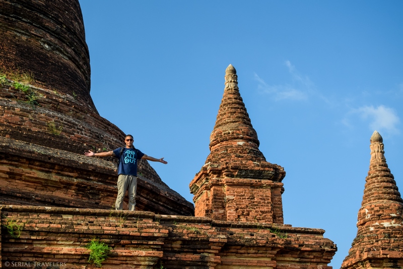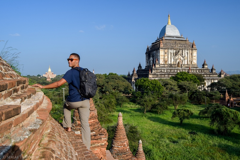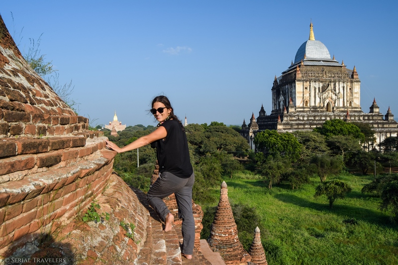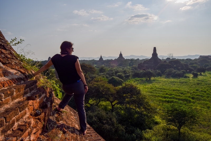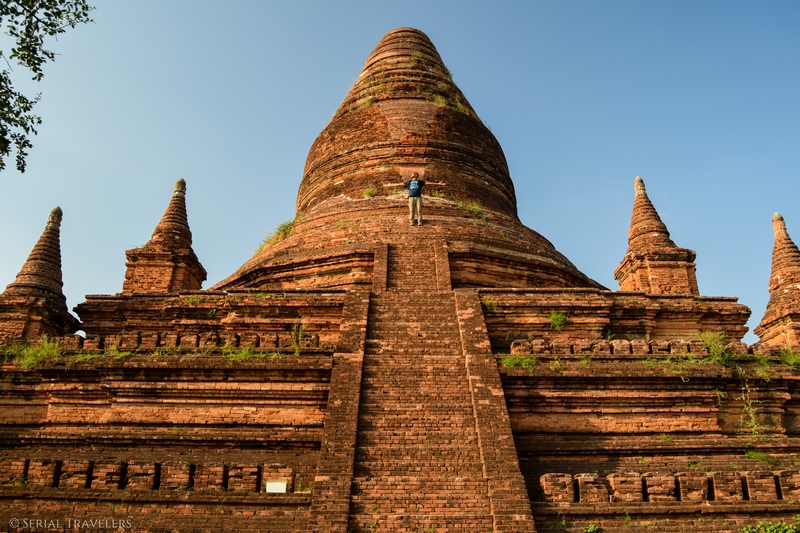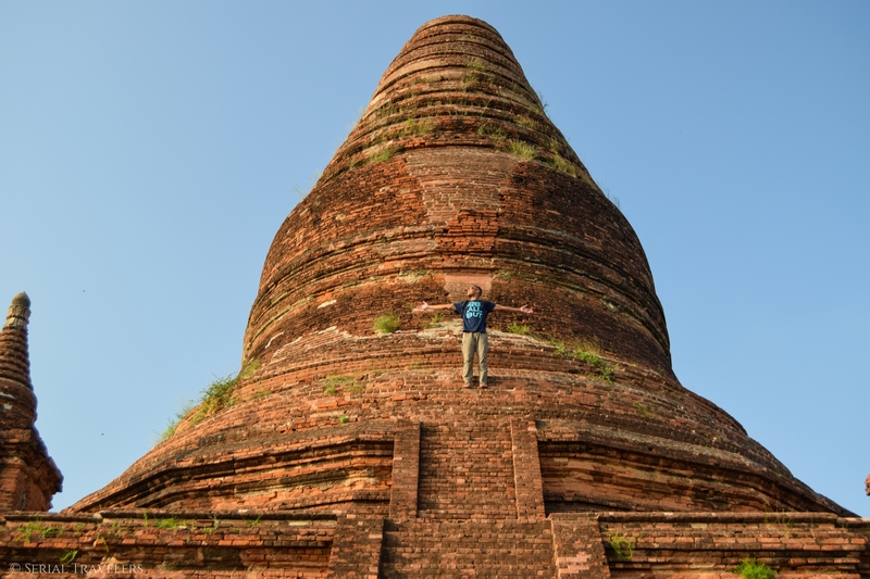 Elle propose un bon point de vue sur la plaine, mais avec malheureusement quelques fils électriques et des pagodes un peu éloignées… Ce n’est pas le meilleur point de vue, mais la pagode de Shwesandaw étant fermée pour rénovation, c’est la solution de repli de dernière minute que nous avons trouvé !