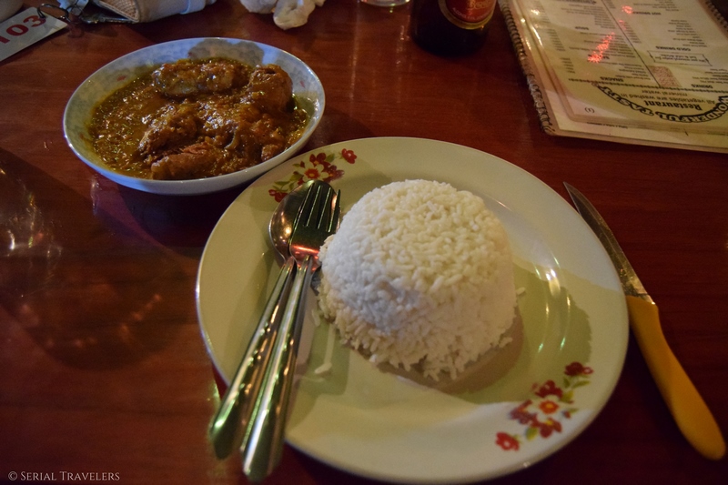- Prix d’un plat avec boisson au Wonderful Tasty : 5 600 MMR/pers. (~3,50 €). Ce resto orienté vers les touristes propose un menu mais également d’excellents plats à la carte (mention spéciale pour le riz au coco avec son poulet ou son porc). C’est une bonne adresse, un peu plus chère que les restaurants locaux mais où on a très bien mangé !