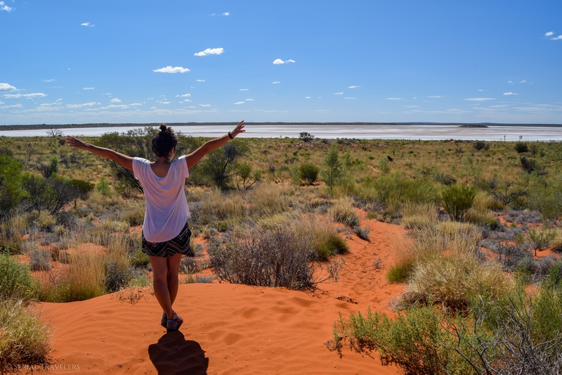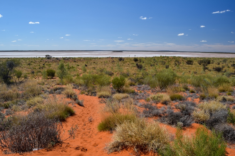 N’ayant pas beaucoup de temps à consacrer au Mount Conner en lui-même à cause des nombreux kilomètres qui nous attendent encore avant l’arrivée, nous repartirons sur la route principale pour s’arrêter plus longuement au niveau du Mount Conner lookout. Il s’agit d’un petit parking aménagé, donnant accès à une butte surplombant la plaine environnante et offrant un panorama sur le Mount Conner bien sûr, mais aussi et surtout sur le lac Amadeus !