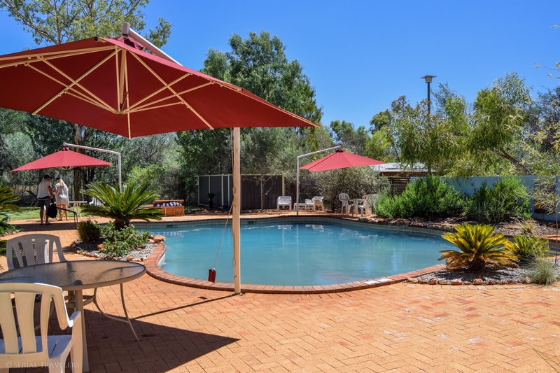 Après s’être installés dans une chambre confortable inattendue face à la piscine du complexe, nous irons chercher quelques paquets de nouilles instantanées supplémentaires à la supérette de Kings Canyon… Et il nous en coûtera un bras, en payant nos 4 paquets de nouilles pour 12 AUD (~7,40 €) ; mais nous étions prévenus après tout !