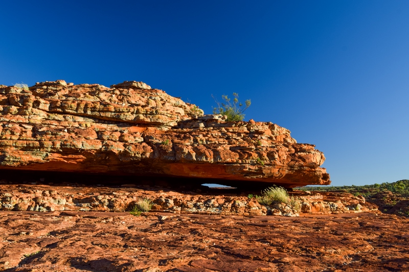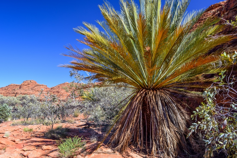 Kings Canyon fait ainsi partie intégrante du Watarrka National Park (nom dérivé d’un mot aborigène faisant référence à l’arbuste parasol typique de la région), situé au Sud-Est du NT. Il se situe à 300 km de Yulara (là où se trouve le parc national d’Uluru-Kata Tjuta), 475 km d’Alice Springs et quasiment 1 970 km de Darwin, la capitale du territoire située tout au Nord ! En dernier lieu, le parc national de Watarrka est la terre ancestrale des Aborigènes Luritja depuis plus de 20 000 ans !