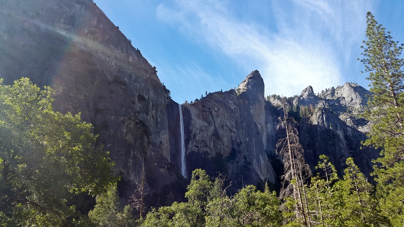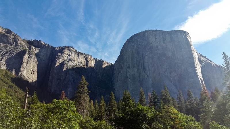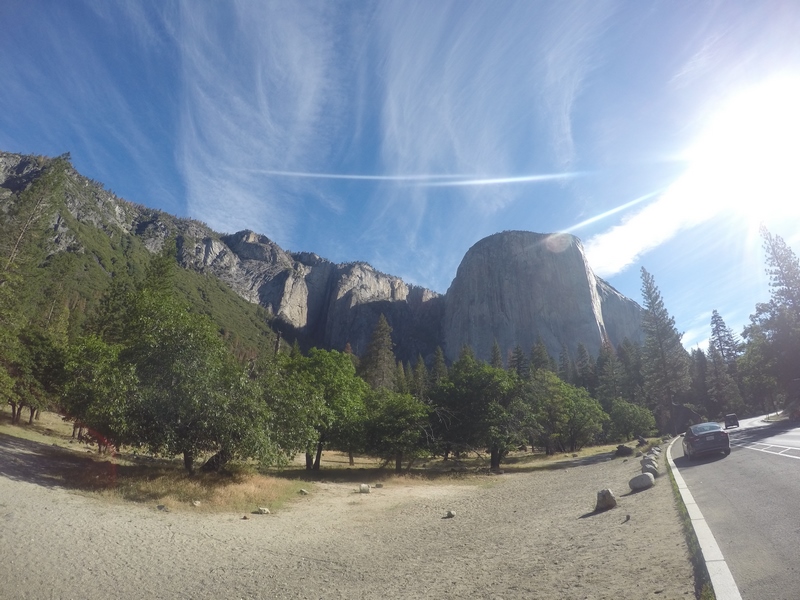 Nous arrivons à Yosemite Valley vers 8H30, en faisant un arrêt rapide au niveau d’El Capitan Picnic Area, qui permet d’avoir une belle vue sur El Capitan (célèbre monolithe de granit 1000 m de haut) et les Bridalveil Falls.