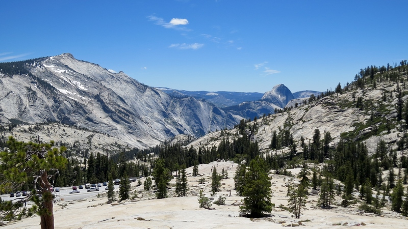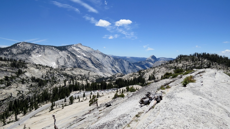 Sortez le trépied, car de cette hauteur, les paysages sont à couper le souffle : vous pouvez apercevoir Tenaya Lake en contre-bas, ainsi que le Half Dome un peu plus loin.