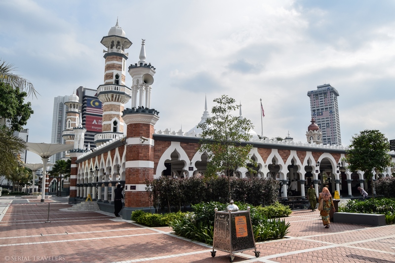 500 mètres plus loin ou depuis la station Masjid Jamek, on trouve la mosquée du même nom. Plus vieille mosquée de KL, sa largeur et ses colonnes rouges et blanches ont été dessinées par un architecte Anglais également auteur de nombreux édifices de l’ère coloniale : Arthur Benison Hubback. L’accès aux visiteurs ferme à 16H30 et n’est pas possible certains jours de la semaine notamment le vendredi.