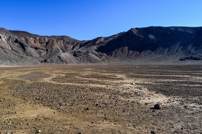 Portion facile et courte où l’on avance dans un paysage lunaire avec le mont Ngauruahoe sur la droite. C’est à ce niveau-là que nous ferons la connaissance de Marie et Thomas, deux Français actuellement en vacances en NZ pendant leur PVT australien. Tels d’irréductibles Gaulois, nous terminerons le trek tous ensemble 🙂