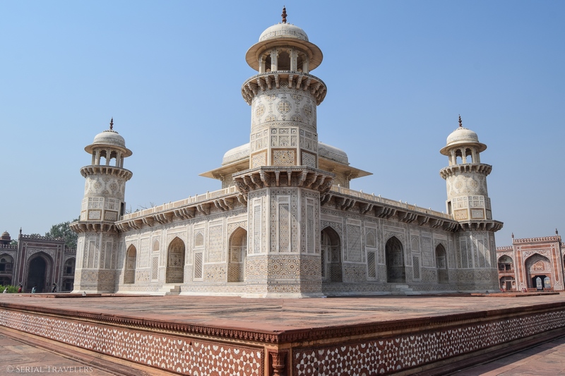 Le mausolée d’Itimâd-Ud-Daulâ est surnommé « Baby Taj » car il est considéré comme un brouillon du Taj Mahal, d’après les historiens. A l’instar de la Merveille du Monde indienne, le Baby Taj est composé d’un mausolée en marbre blanc au centre, entouré de murs et de bâtiments de grès rouge.