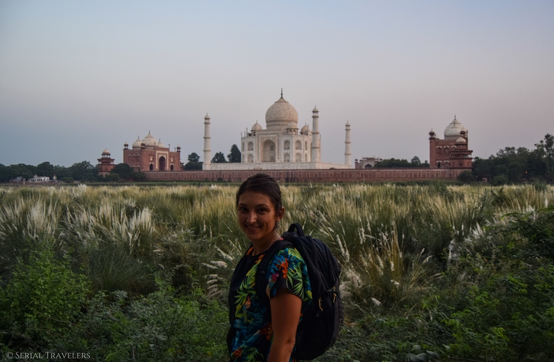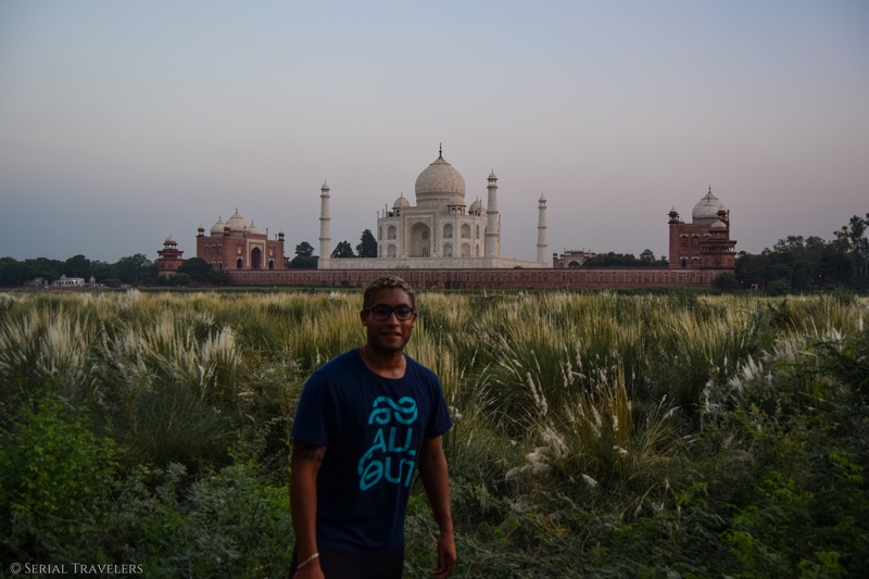 Malheureusement, le soleil ne se couche pas directement sur le Taj Mahal : on ne profite donc que très peu des couleurs descendantes de la fin de journée. Toutefois, cela reste un moment magique, où nous admirons cette merveille pour la première fois de loin.