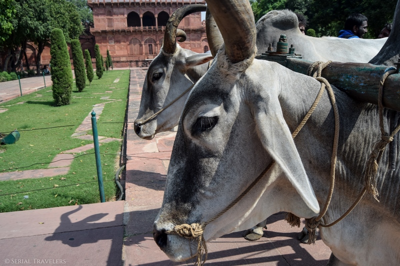 - Entrée au fort d’Agra : 500 INR/pers. (~6,70 €) avec exemption des taxes