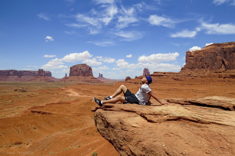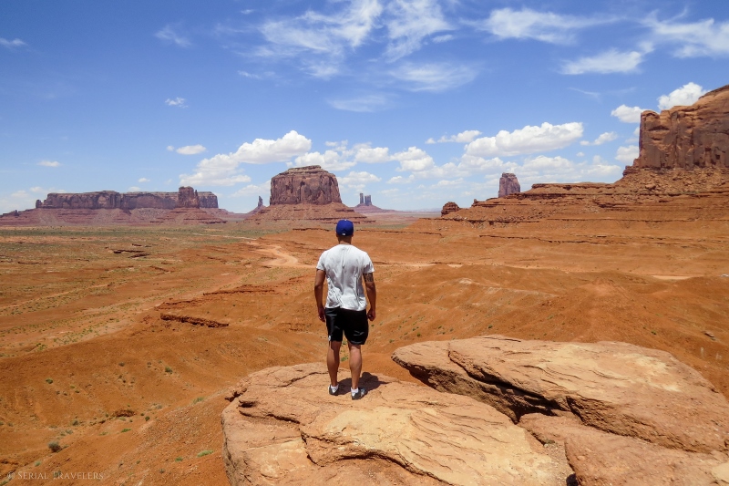 John Ford’s Point est l’un des points de vue les plus célèbres du parc et là où les touristes font sûrement leurs plus beaux clichés ! En effet, c’est précisément ce site qui a construit la légende cinématographique de Monument Valley ! À cet endroit, un promontoire rocheux s’avance au-dessus du plateau en contre-bas, offrant une vue à couper le souffle sur les buttes, avec la Valley Drive serpentant à leur pied. C’est ici que nous avons obtenu nos meilleurs clichés de Monument Valley 🙂