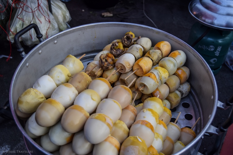 Nous nous baladons tout de même pour découvrir les quelques stands ouverts et nous tombons nez à nez avec Gurcan, un Turc qui était avec nous pour notre excursion catastrophique sur le delta du Mékong ! Cette rencontre fortuite embellit notre visite car Gurcan est un grand passionné de voyages et a toujours plein d’anecdotes à partager 🙂