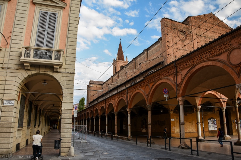 On y trouve également les fameux portici – les arcades – abritant près de 40 km de rues dans le centre historique de Bologne ! La ville est ainsi affublée de nombreux surnoms tels que la Rossa (la rouge, en référence à ses tuiles rouges et sa sensibilité politique orientée à gauche), la Dotta (la savante, pour son rayonnement culturel) ou encore la Grassa (la grasse, pour sa cuisine réputée) !