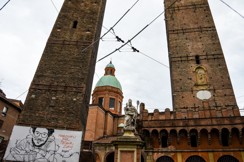 Les tours jumelles Asinelli et Garisenda, datant du Moyen-Âge, sont l’un des symboles de la ville, subsistant encore aujourd’hui ! Auparavant, Bologne était couverte d’une multitudes de tours entre le XIIème et le XIIIème siècles, sans que l’on saisisse réellement leur fonction, peut-être militaire ou pour le prestige des familles qui les bâtissaient. Haute de 97 m, la tour Asinelli est la plus haute de Bologne et présente une inclinaison de 1,3°. La tour Garisenda, est quant à elle, haute de 48 m avec une inclinaison encore plus prononcée, ce qui fait qu’elle est interdite au public !