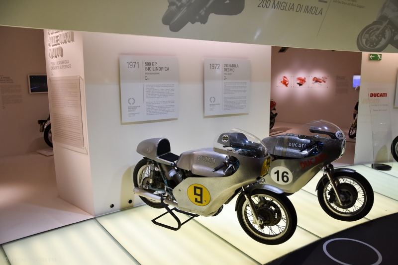 Le lendemain de notre arrivée à Bologne, vendredi 27 août 2021, la météo n’est pas du tout à la fête… Nous partons donc en direction du musée Ducati situé en périphérie de Bologne, dans la commune de Borgo Panigale. C’est d’ailleurs cette ville qui donne son nom à la moto hypersportive Ducati Panigale. Le musée Ducati est attenant à l’usine où sont produites les motos de la marque italienne, mais en août 2021, l’usine n’était malheureusement pas ouverte au public… Toutefois, Noah et Thomas furent complètement aux anges durant la visite du musée, qui permet de retracer toute l’histoire de la marque au travers de ses différents modèles de moto commerciales ou de compétition !