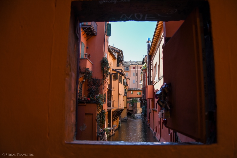 Dans le reste de l’après-midi, nous nous perdrons dans les rues de Bologne en passant à proximité des basiliques de San Domenico et de Santuario Santo Stefano avant de bifurquer en direction du Finestrella di Via Piella. Cette fenêtre ouverte dans un mur laisse entrevoir le système de canaux existant à Bologne depuis l’époque moyenâgeuse. Pas de quoi casser 3 pattes à un canard, mais la petite fenêtre dans le mur est assez photogénique 🙂