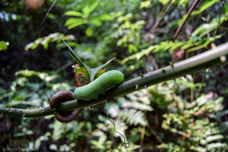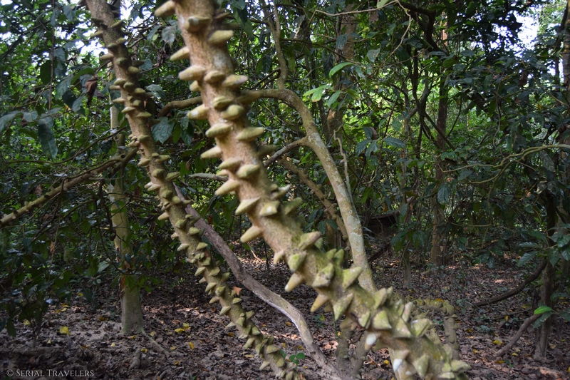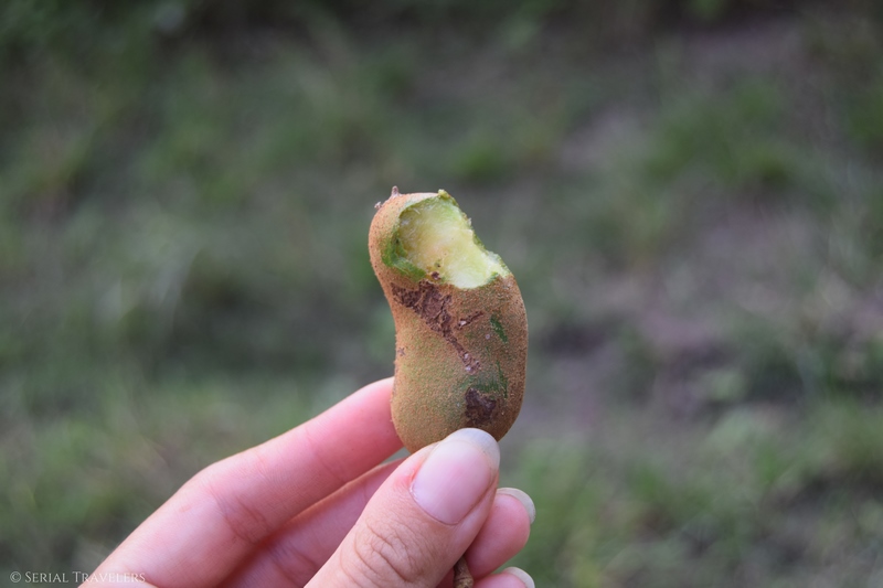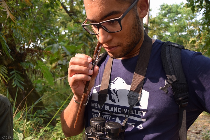 Nous nous arrêtons également pour déguster des feuilles d’arbres ou des fruits inconnus que le guide adore mais que nous trouvons immangeables ! L’un des fruits est très acide, le guide en récolte un sac entier pour ses proches, apparemment, les locaux en raffolent.