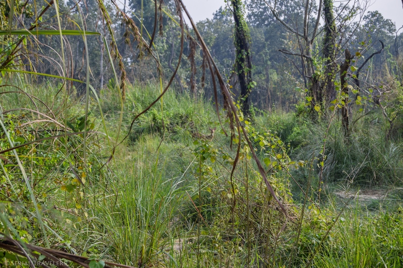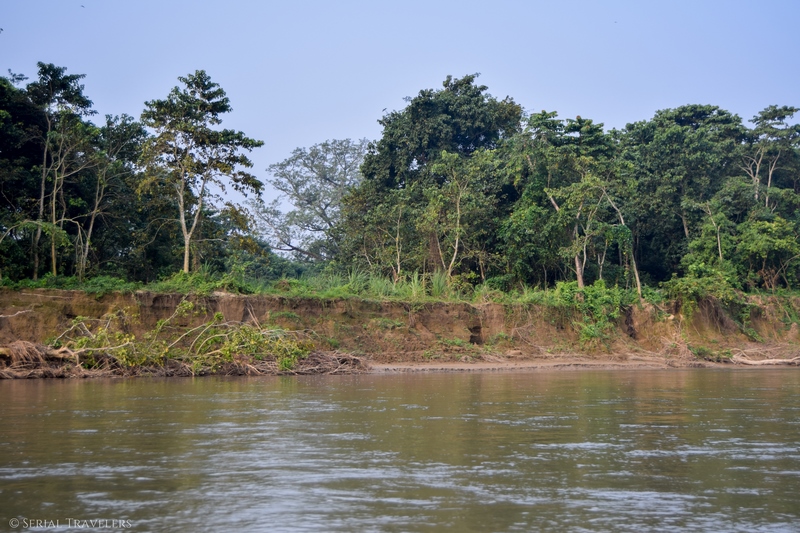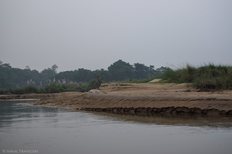 À titre d’exemple, en recherchant dans les agences de Katmandou (quartier de Thamel), on nous proposait des packages allant jusqu’à 260$ par personne ! Et oui, il faut à la fois payer l’agence de Chitwan et celle de Katmandou, ce qui gonfle prodigieusement le tarif ! Nous ferons le choix d’une traversée d’une heure en pirogue le long de la rivière, suivie d’un trek d’une journée dans la jungle avec deux guides, rien que pour nous 🙂