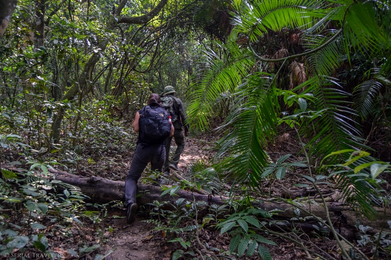 Le lendemain, mercredi 25 octobre 2017, nous nous levons aux aurores pour être à l’entrée du parc à 7H du matin. Au niveau de la réception de la guesthouse, nous faisons connaissance avec nos deux guides qui nous accompagneront toute la journée et nous montons dans une pirogue pour une heure de trajet afin de pénétrer dans le parc.
