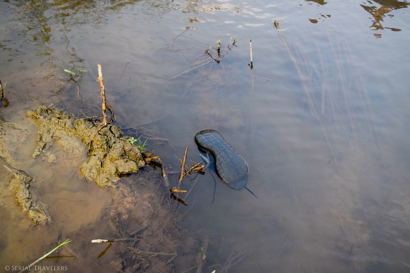 En quittant la forêt, nous traversons tristement une décharge à ciel ouvert mêlant branches, déchets plastique et autres ordures… Il s’agit d’une catastrophe écologique liée à une inondation ayant eu lieu quelques semaines auparavant où pratiquement tout le parc et la région ont été noyés sous les eaux, en charriant les déchets présents dans les rues…