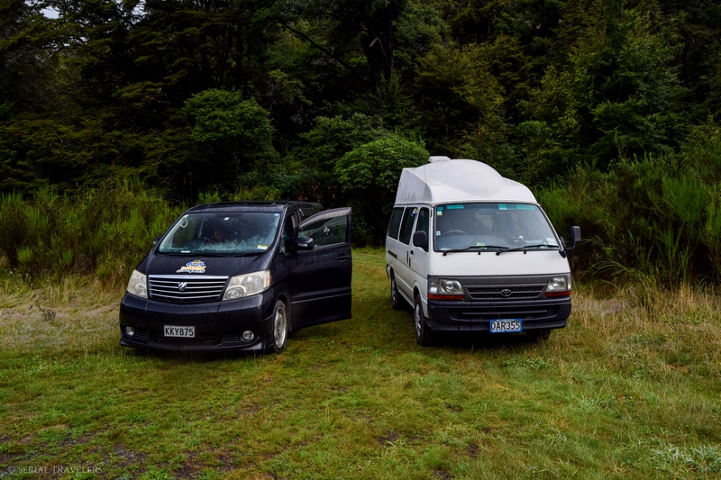 Ce petit van nous a bien plu au début, mais il est vrai qu’il n’était pas franchement pratique, car il s’agissait plus d’une grosse voiture que d’un campervan. Ainsi, on ne pouvait pas tenir debout à l’arrière et il n’était pas non plus possible de faire à manger à l’intérieur, au contraire du van de Marie & Thomas, visible sur la première photo. Pour rappel, nous avions rencontré nos petits frenchies sur le sentier du Tongariro et nous avons finalement voyagé tous ensemble pendant plus de deux semaines !
