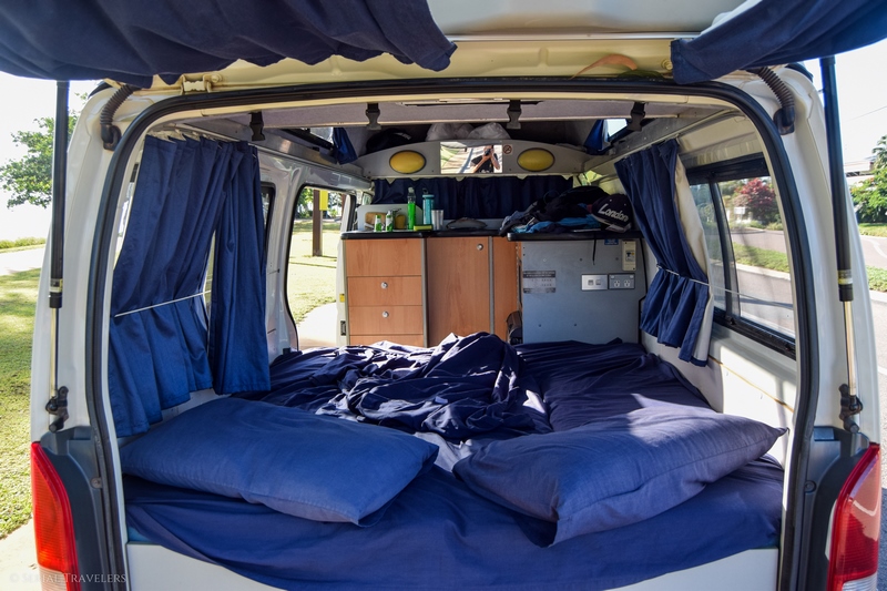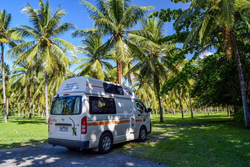Entre Cairns et Brisbane, nous avons réservé un van chez Mighty Campers, la marque low cost de Britz. Au moment de prendre le véhicule, nous nous retrouverons cette fois-ci avec un van très âgé de Britz, totalisant plus de 350 000 kilomètres !