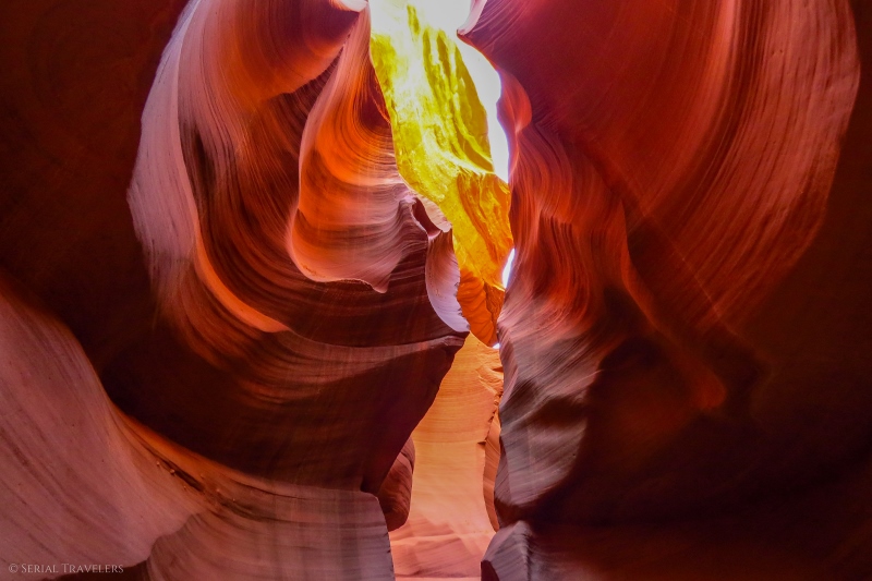 Compte-tenu de l’affluence sur le site, il faut savoir qu’avec un tour « standard », vous n’aurez quasiment jamais l’occasion d’être seuls pour faire vos photos, et encore moins l’occasion de poser un trépied pour faire de beaux clichés. D’ailleurs, les trépieds photo sont interdits avec un tour standard ! Si vous tenez à faire de belles photos avec trépied, il faudra absolument passer par un tour spécial photographes ou « deluxe tour » qui permet d’être en petit groupe dans le canyon et donc de poser un trépied.