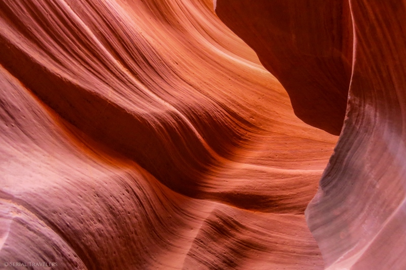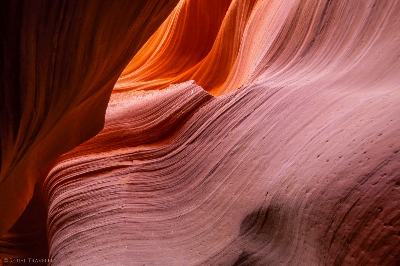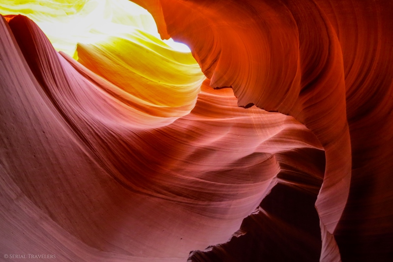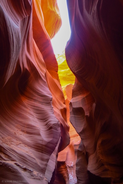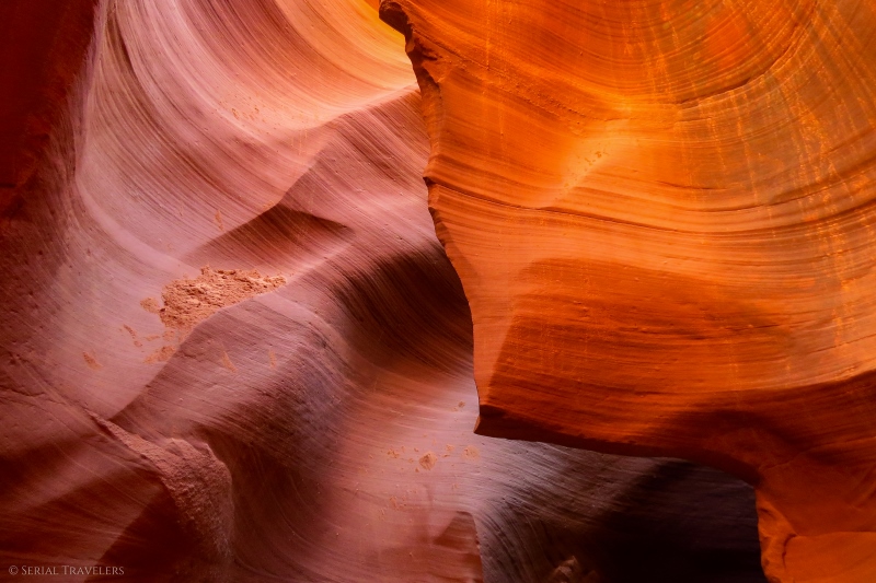 Avec ses formes incroyables et sa palette de couleurs aux tons ocres, orangés et même violacés, cet étroit défilé est un véritable feu d’artifice pour les yeux ! Retrouvez ici notre guide pratique où nous avons regroupé tous nos conseils & astuces pour une visite 100% réussie de Lower Antelope Canyon !
