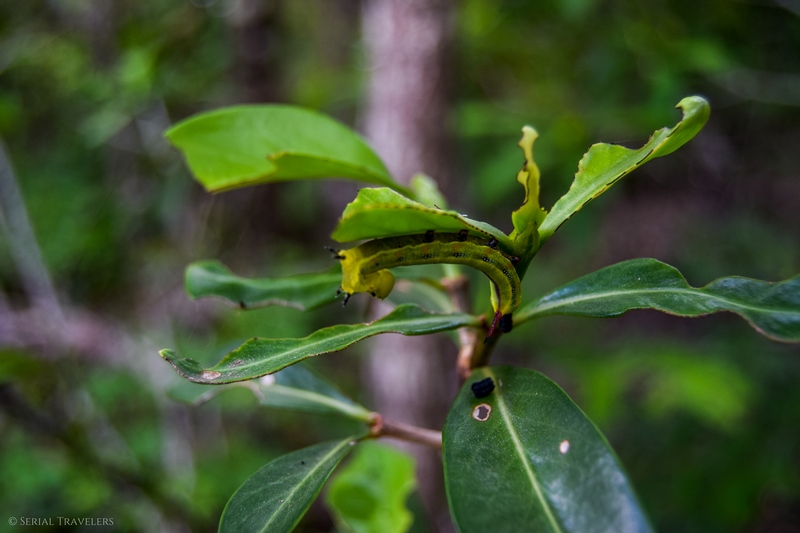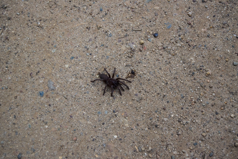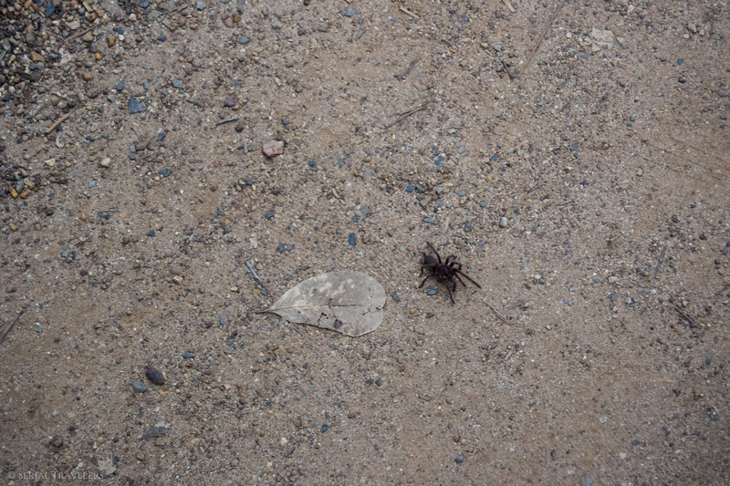 Un zodiac débarque donc les passagers du catamaran sur Whitsunday Island en effectuant plusieurs allers/retours. Nous suivons docilement notre groupe à travers la végétation tropicale de l’île pour atteindre le fameux point de vue du Hill Inlet Lookout. En chemin, nous tombons nez-à-nez avec une Funnel Web Spider, ou araignée à toile-entonnoir, une énorme arachnide à la morsure potentiellement mortelle ! Cette « petite » araignée de 1 à 5 cm de long nous a d’ailleurs montré ses crochets en avertissement pour ne pas approcher plus près !