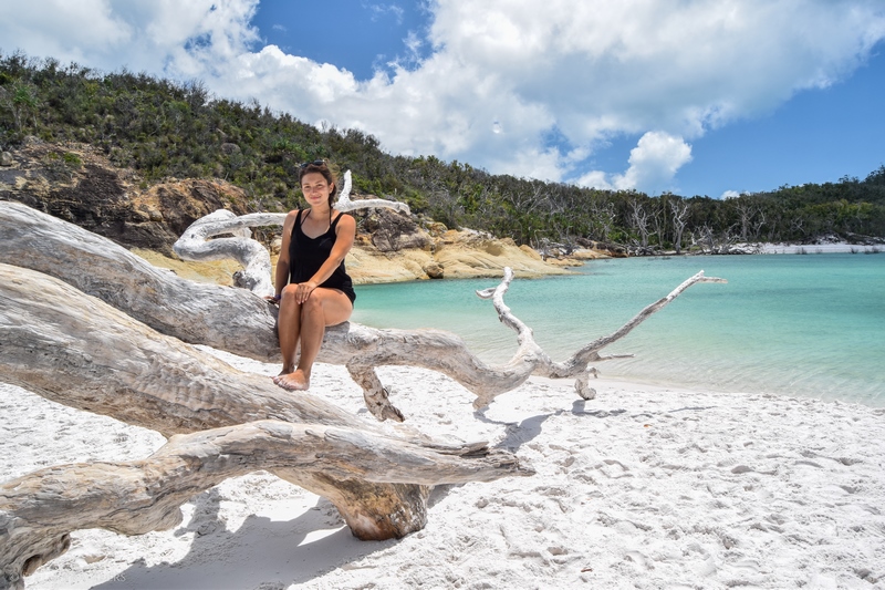 Arrivés sur place, d’immenses vagues de sable d’un blanc éclatant s’étendent devant nous à perte de vue, avant de plonger dans une eau cristalline. C’est alors à ce moment que l’on se rend compte que nous sommes sur la bonne île mais pas sur la bonne plage ! En effet, nous avons débarqué à Betty’s Beach, dans la baie de Whitehaven Bay… Faisant face à la célèbre plage de Whitehaven Beach… Nous ne sommes donc pas sur cette large bande de 7 km de sable blanc qui fait tant rêver ! Mais, après réflexion, ce n’est pas un drame car Betty’s Beach est beaucoup moins fréquentée que son illustre aînée et permet d’accéder à l’Hill Inlet, mais il vaut mieux le savoir 😉