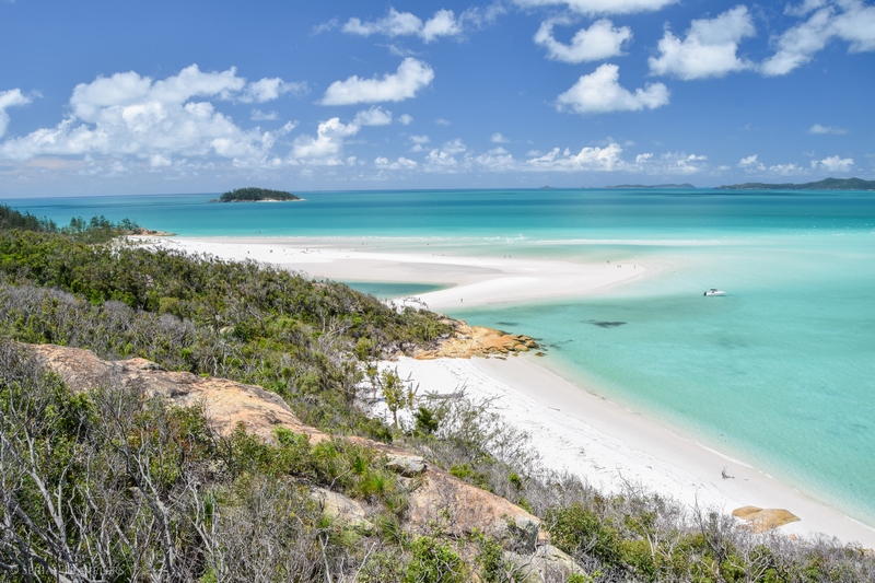 74 îles constituent l’archipel des Whitsundays mais seulement 17 de ces mini paradis terrestres sont habités. Pourquoi mini paradis terrestres ? Et bien, on y trouve des plages de sable fin à l’immaculée blancheur, trempant dans des eaux bleues turquoises, comptant parmi les plus belles du pays ! Ces paysages de carte postale font la renommée de la région et font donc partie des immanquables lors d’un voyage au pays des kangourous ! Si les Whitsundays sont aussi célèbres, cela est dû en grande partie aux paysages d’Hill Inlet et Whitehaven Beach, tous deux situés sur Whitsunday Island, la plus grande île de l’archipel !
